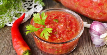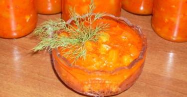 Добавляя в рецепт болгарский перец, можно получить в меру сладкую, но благодаря чесноку и горькому перцу в то же время и острую закуску.