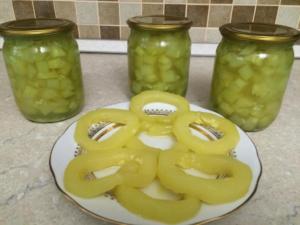 Популярный метод заготовки кабачков в ананасовом соке. Добавив пакетированный нектар, закуска приобретет необходимый вкус. Именно поэтому отличить овощ от экзотического фрукта довольно тяжело.